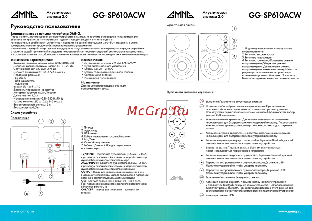 GMNG GG-SP610ACW Инструкция по эксплуатации онлайн