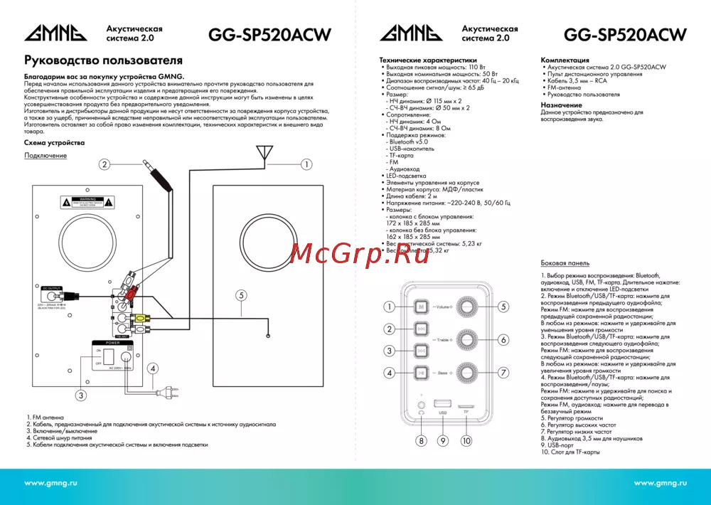 GMNG GG-SP520ACW Инструкция по эксплуатации онлайн
