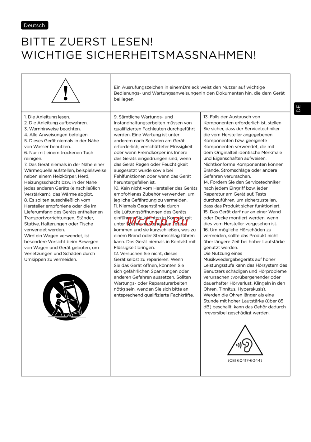 15. Das Gerät darf nur an einer Wand