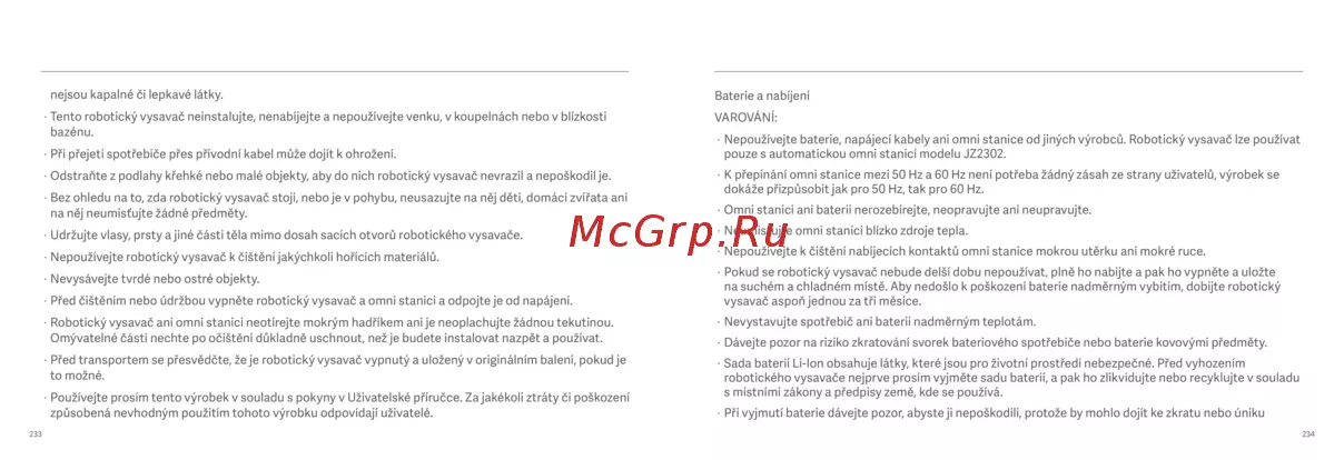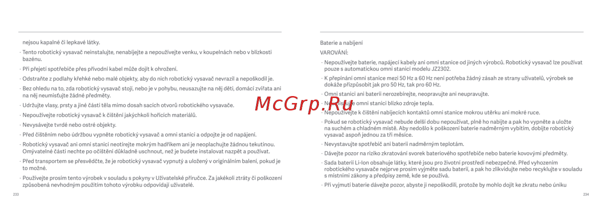 · Robotický vysavač ani omni stanici neotírejte mokrým hadříkem ani je neoplachujte žádnou tekutinou.