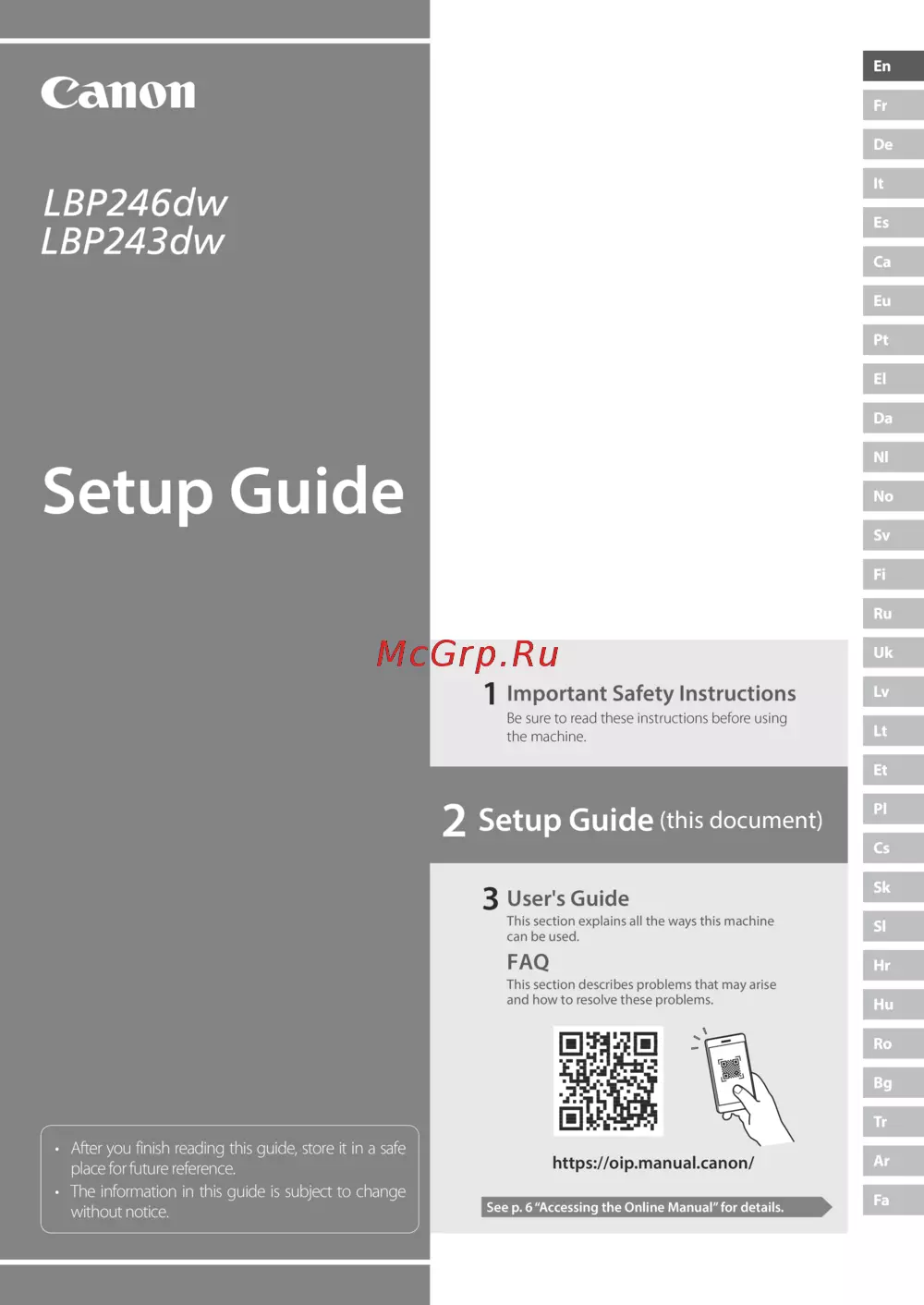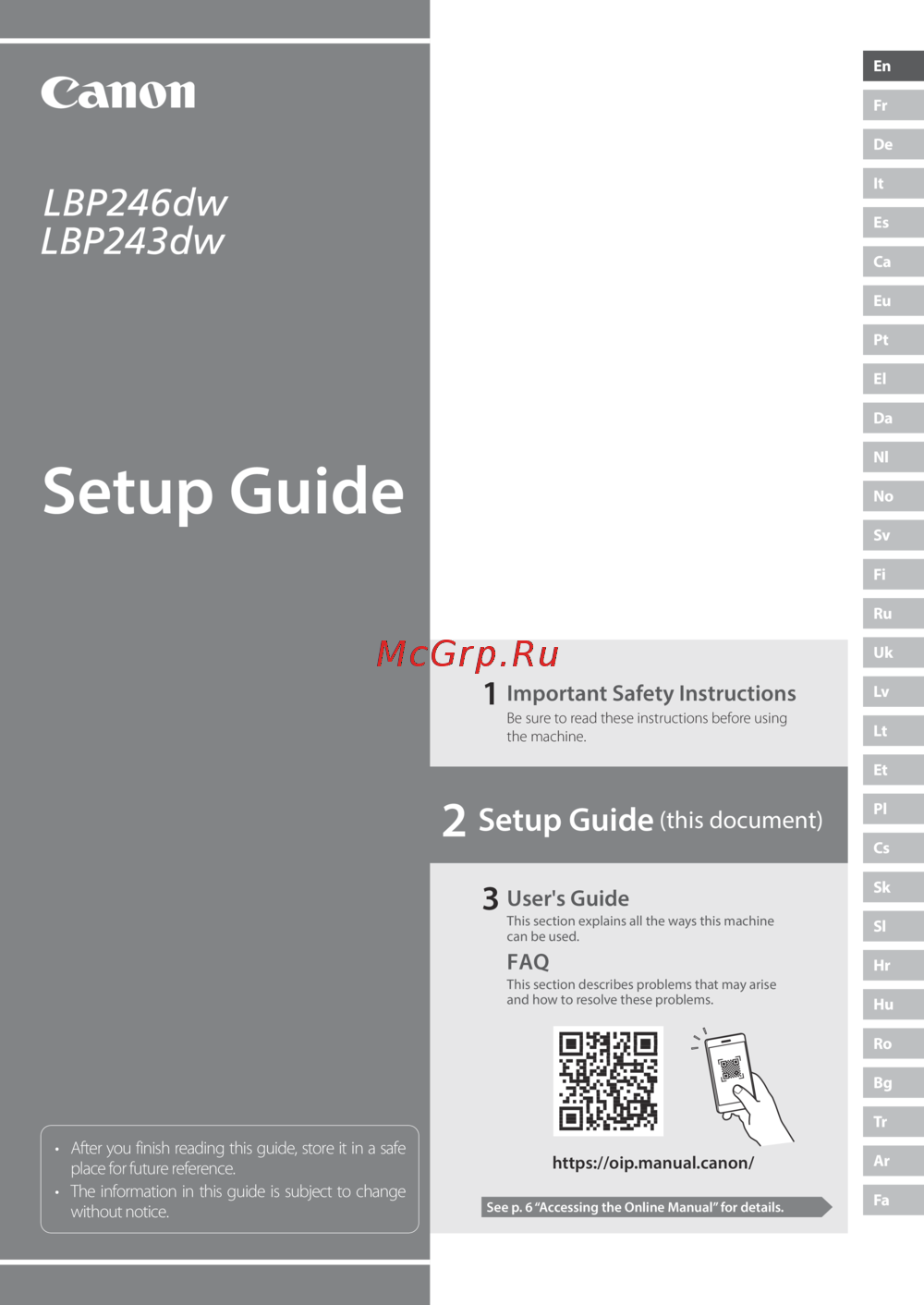 Canon i-Sensys LBP246dw (5952C006) Руководство по эксплуатации онлайн