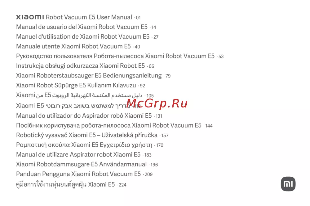 Xiaomi Robot Vacuum 210+Руководство по эксплуатации -