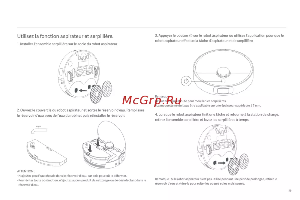 Xiaomi Robot Vacuum S20+ White — guide d'utilisation de l'aspirateur robot avec fonction serpillière [51/349]