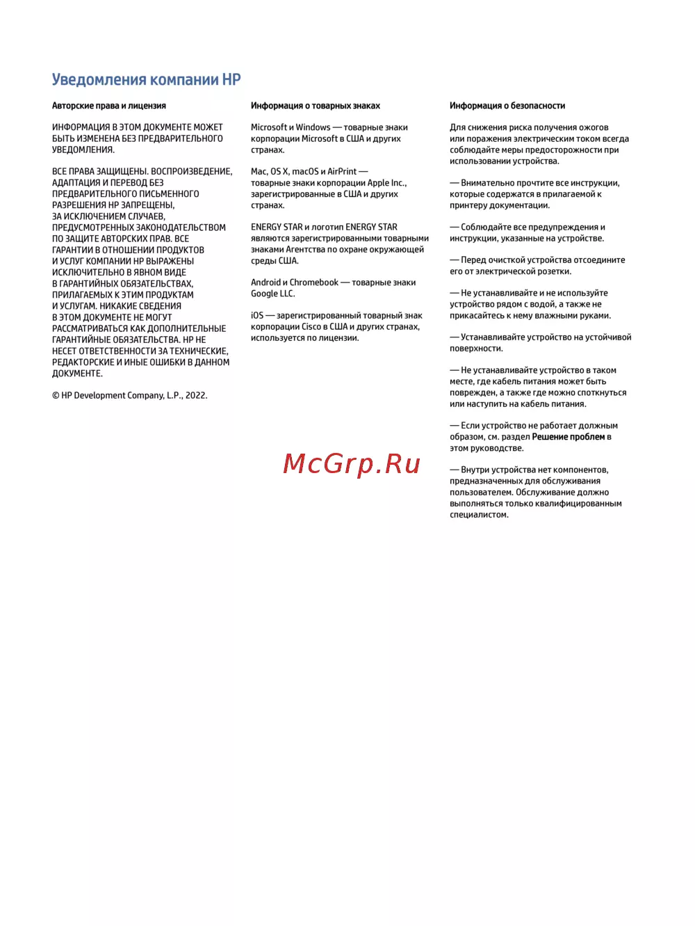 Уведомления компании HP
