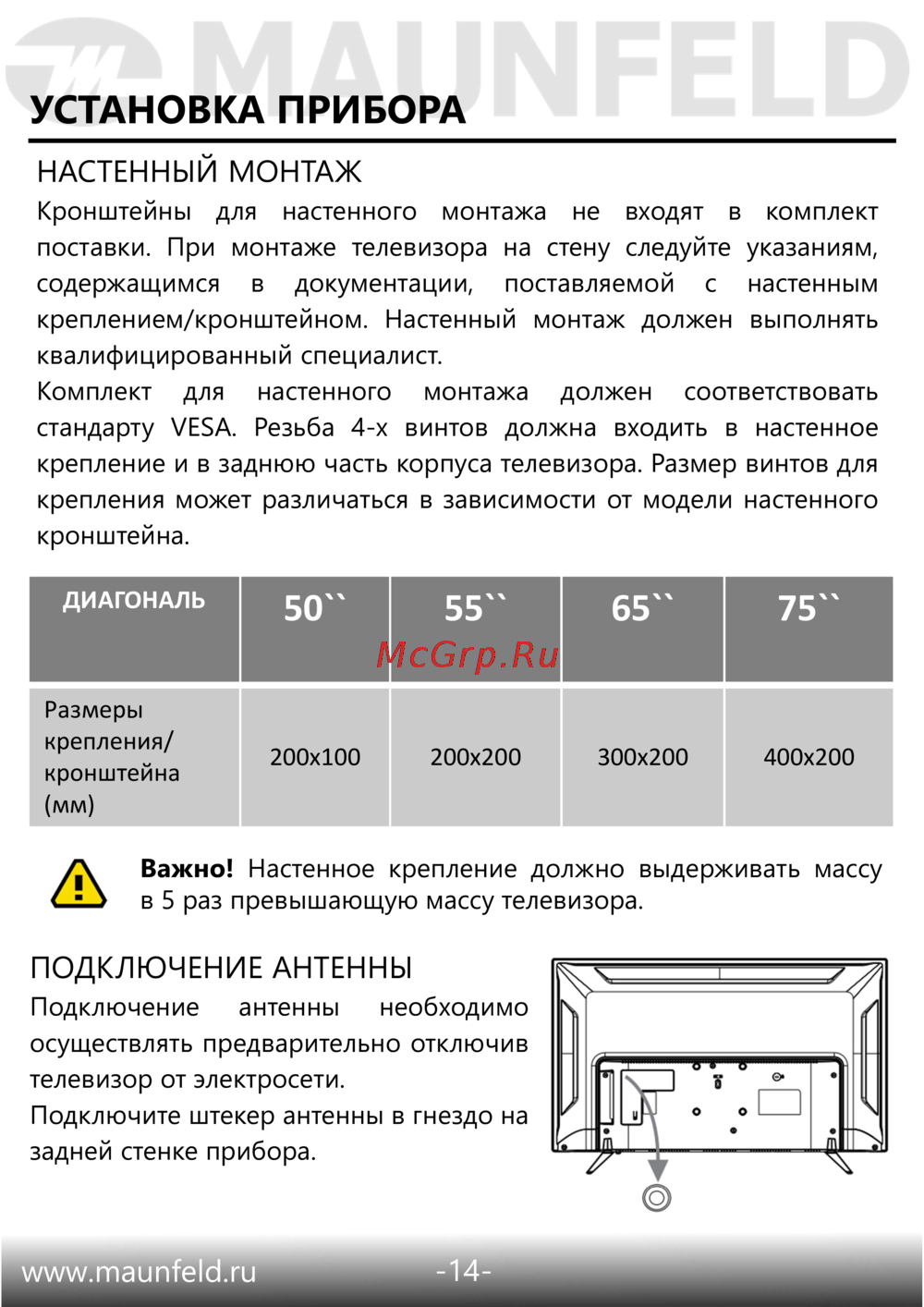 Maunfeld MQT65UST03 — настенный монтаж телевизора: советы по установке и креплению [15/48]