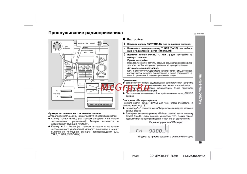 Sharp CD-MPX100HR — руководство по использованию радиоприемника с автоматической настройкой [21/36]