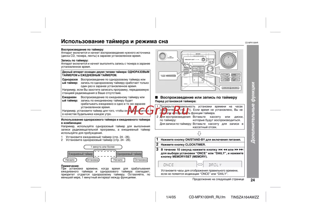 Sharp CD-MPX100HR — как использовать таймер и режим сна для воспроизведения и записи [27/36]