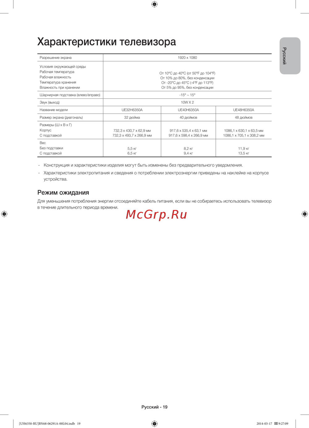 - Характеристики электропитания и сведения о потреблении электроэнергии приведены на наклейке на корпусе устройства p.19