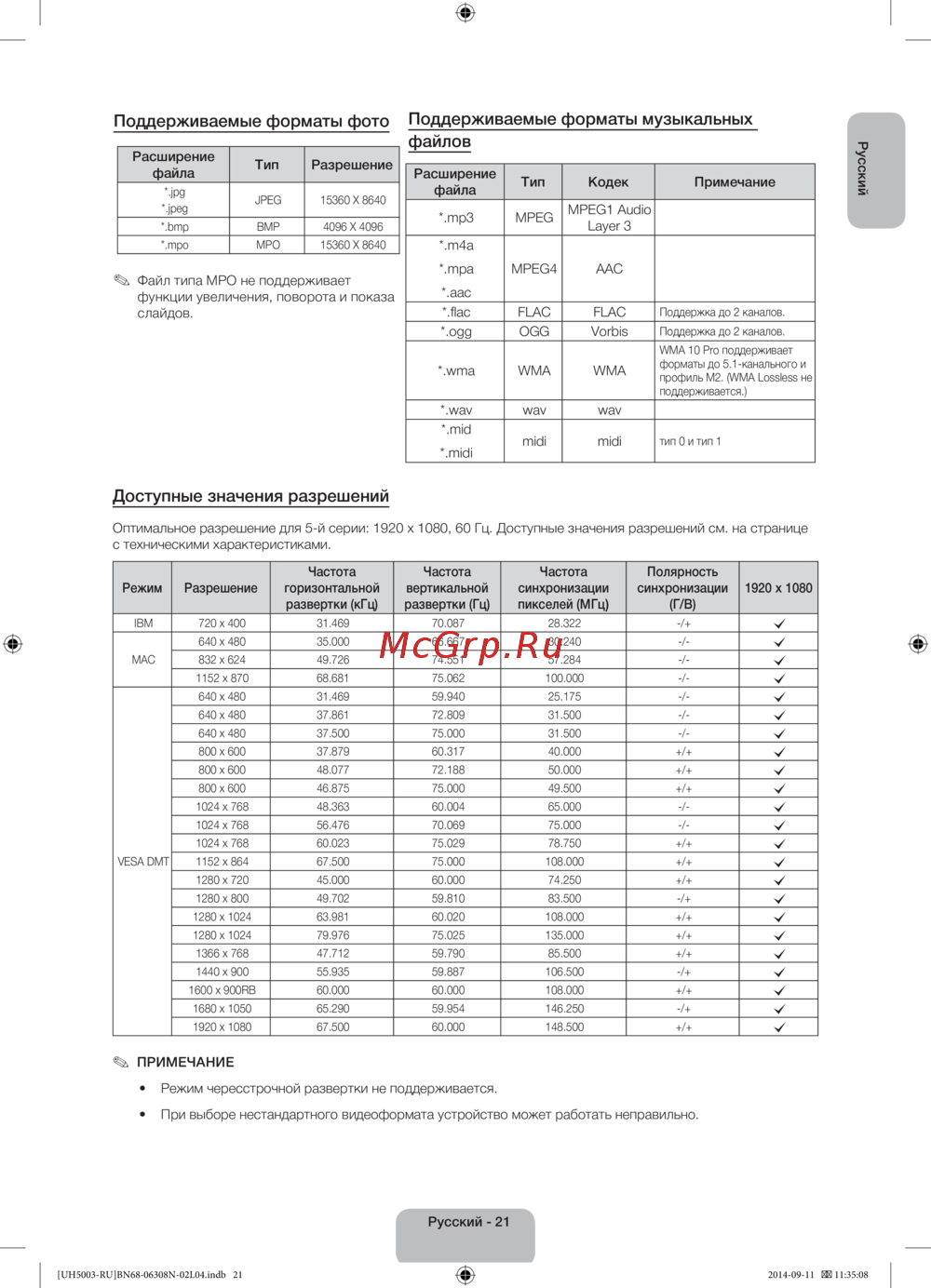 Оптимальное разрешение для 5-й серии: 1920 x 1080, 60 Гц. Доступные значения разрешений см. на странице