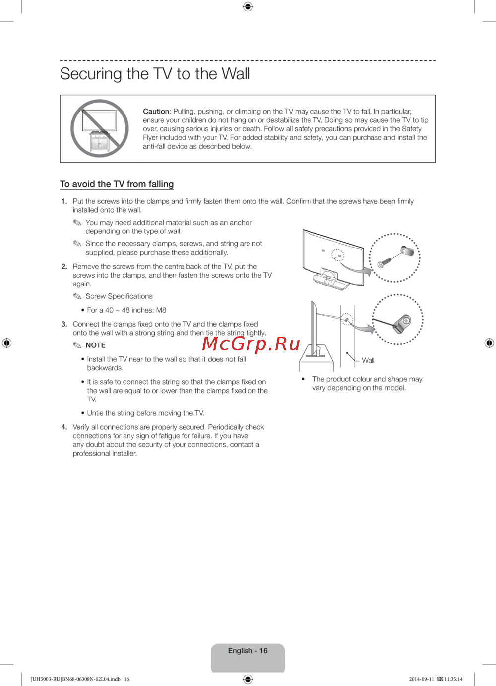 Samsung UE48H5003AK [40/95] To avoid the tv from falling