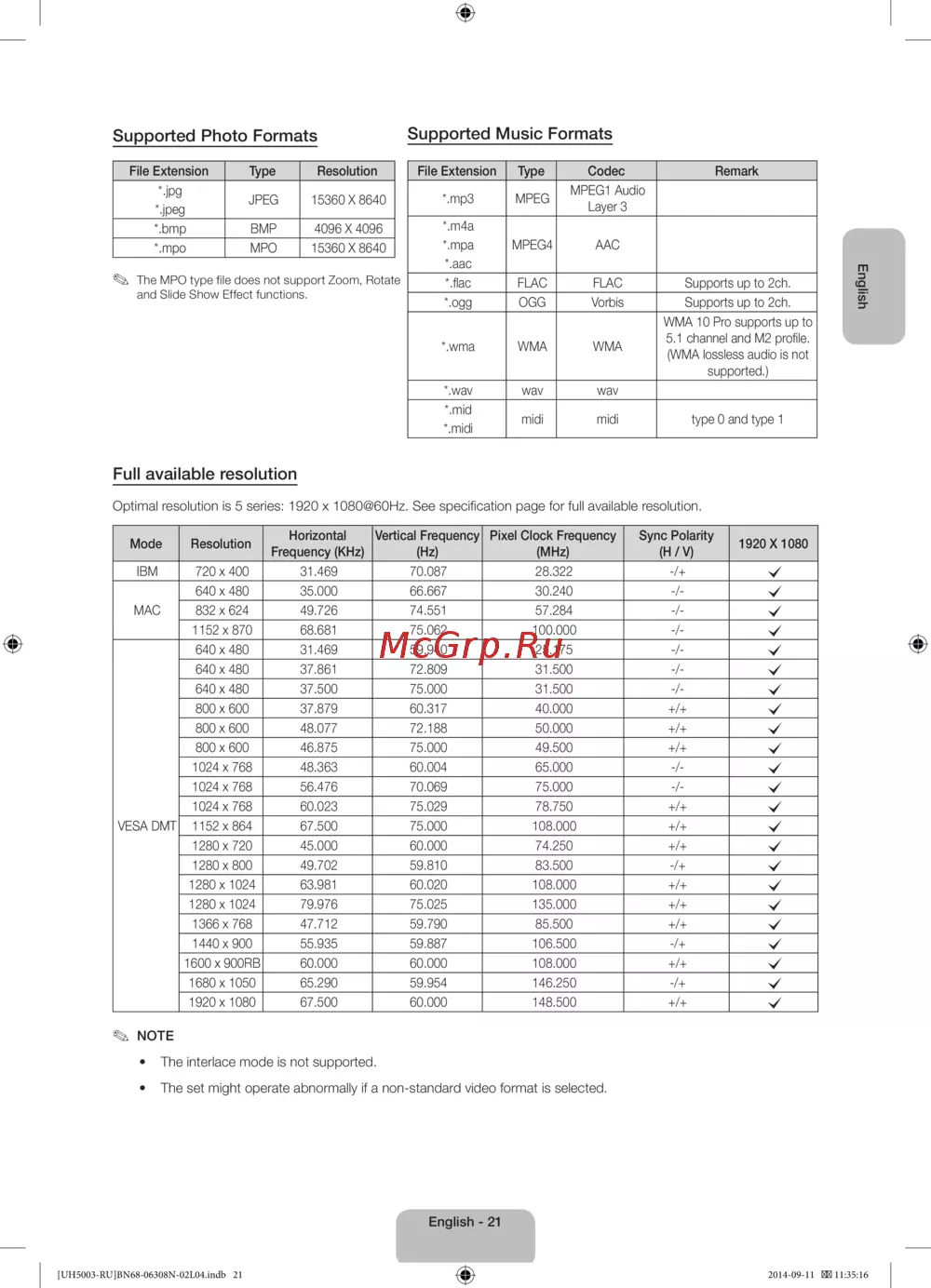 • The interlace mode is not supported.