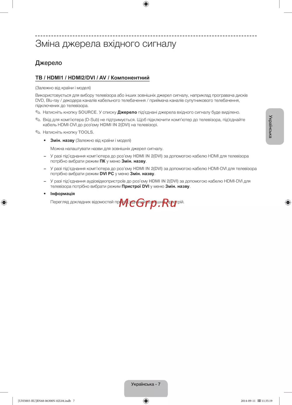 - Тв hdmi1 hdmi2 dvi av компонент p.7