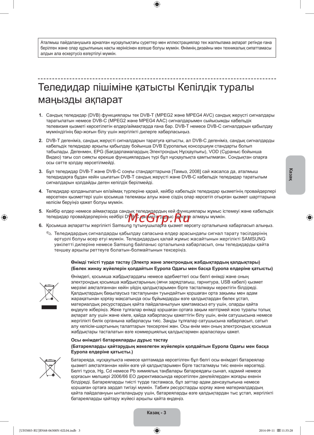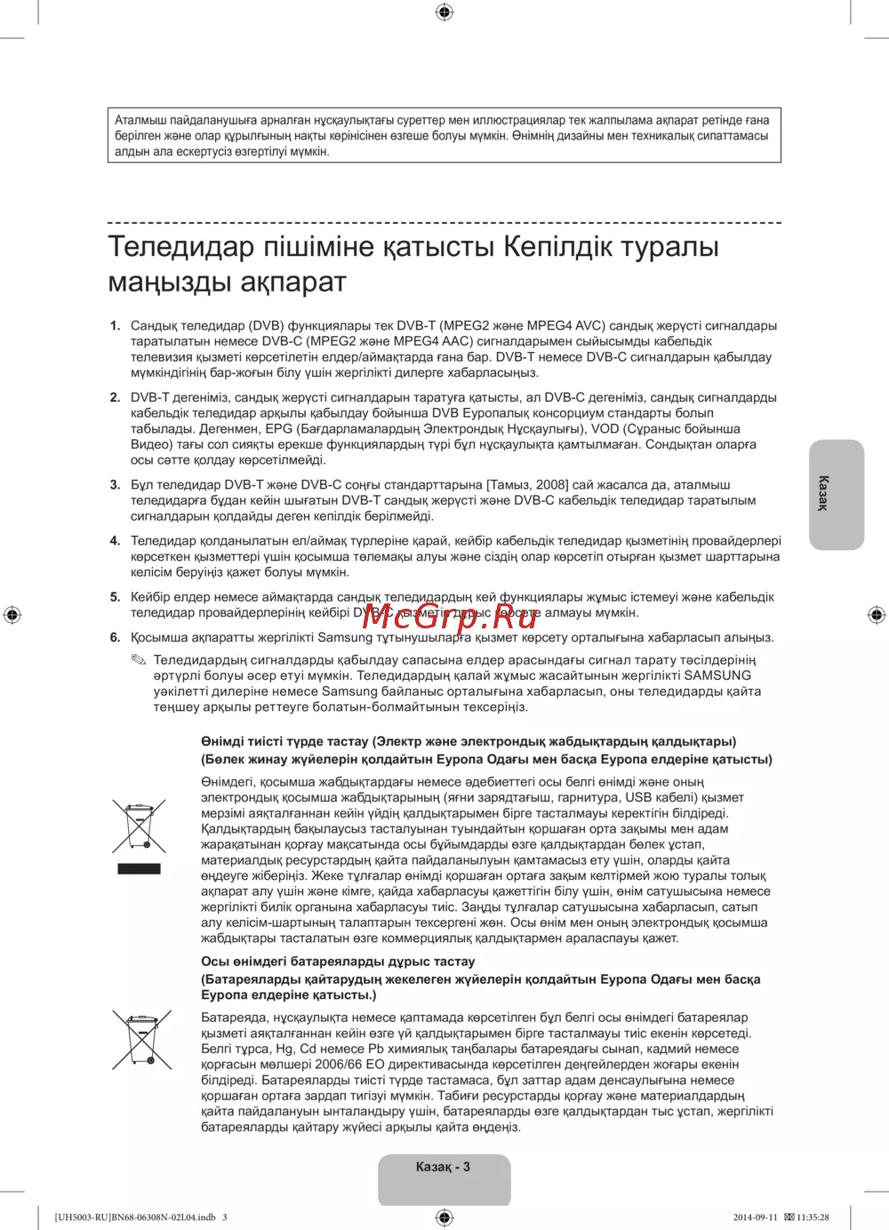3. Бұл теледидар DVB-T және DVB-C соңғы стандарттарына [Тамыз, 2008] сай жасалса да, аталмыш