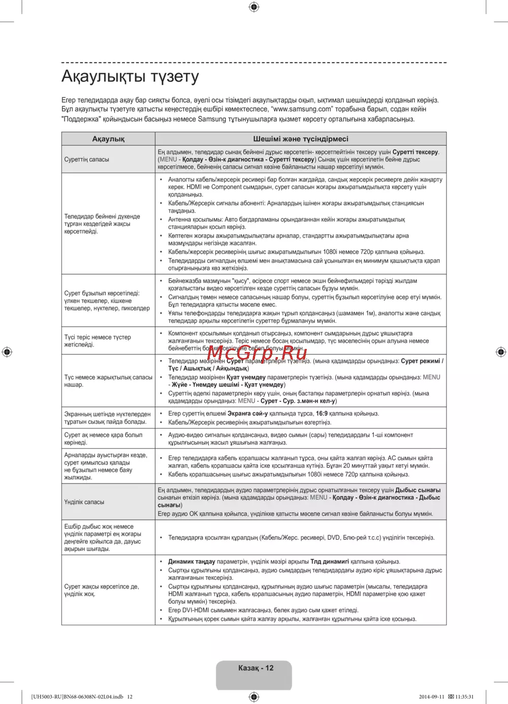 Бұл ақаулықты түзетуге қатысты кеңестердің ешбірі көмектеспесе, “www.samsung.com” торабына барып, содан кейін