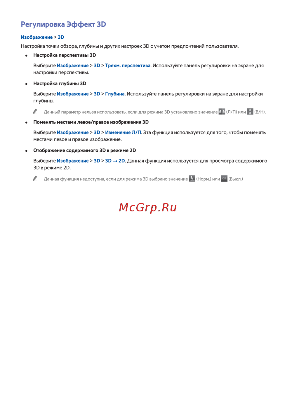 - Ознакомьтесь с данным разделом перед использованием режима просмотра 3d p.5