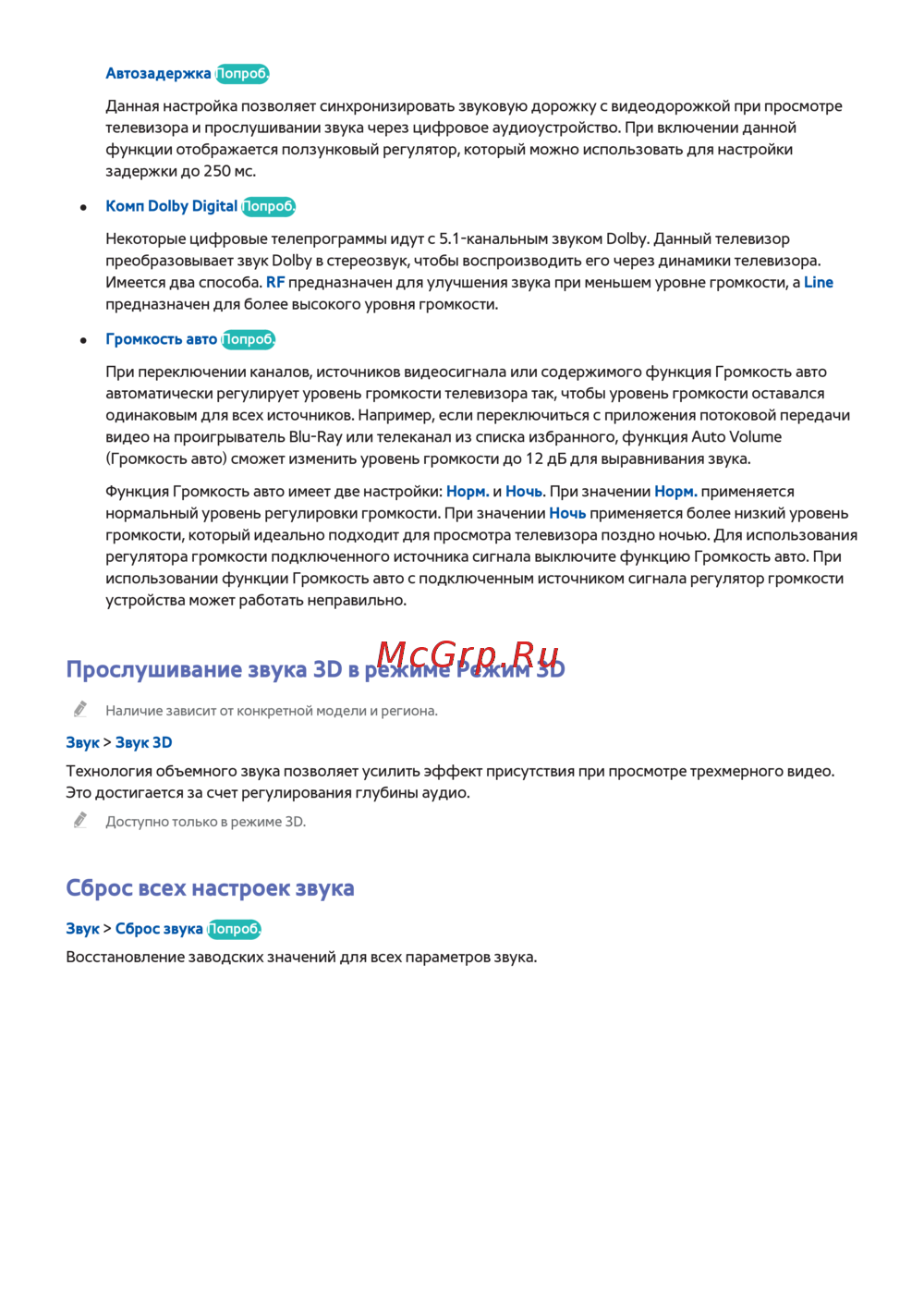 Samsung UE48H5203AK — настройки звука для телевизоров: автозадержка и объемный звук [111/166]
