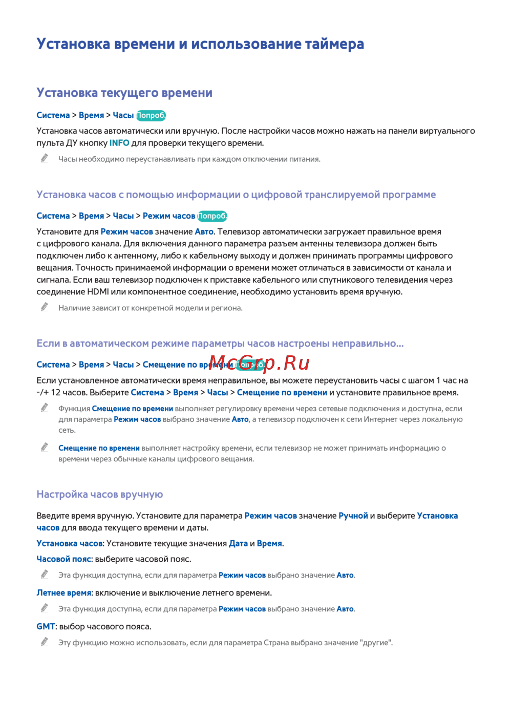 Установите для Режим часов значение Авто. Телевизор автоматически загружает правильное время