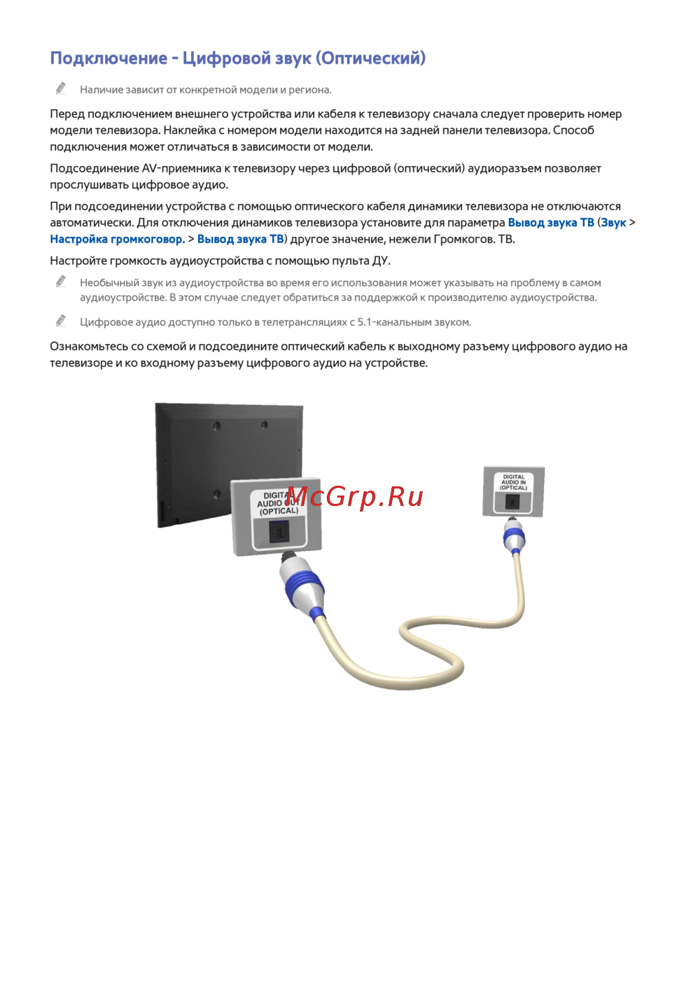 телевизоре и ко входному разъему цифрового аудио на устройстве.