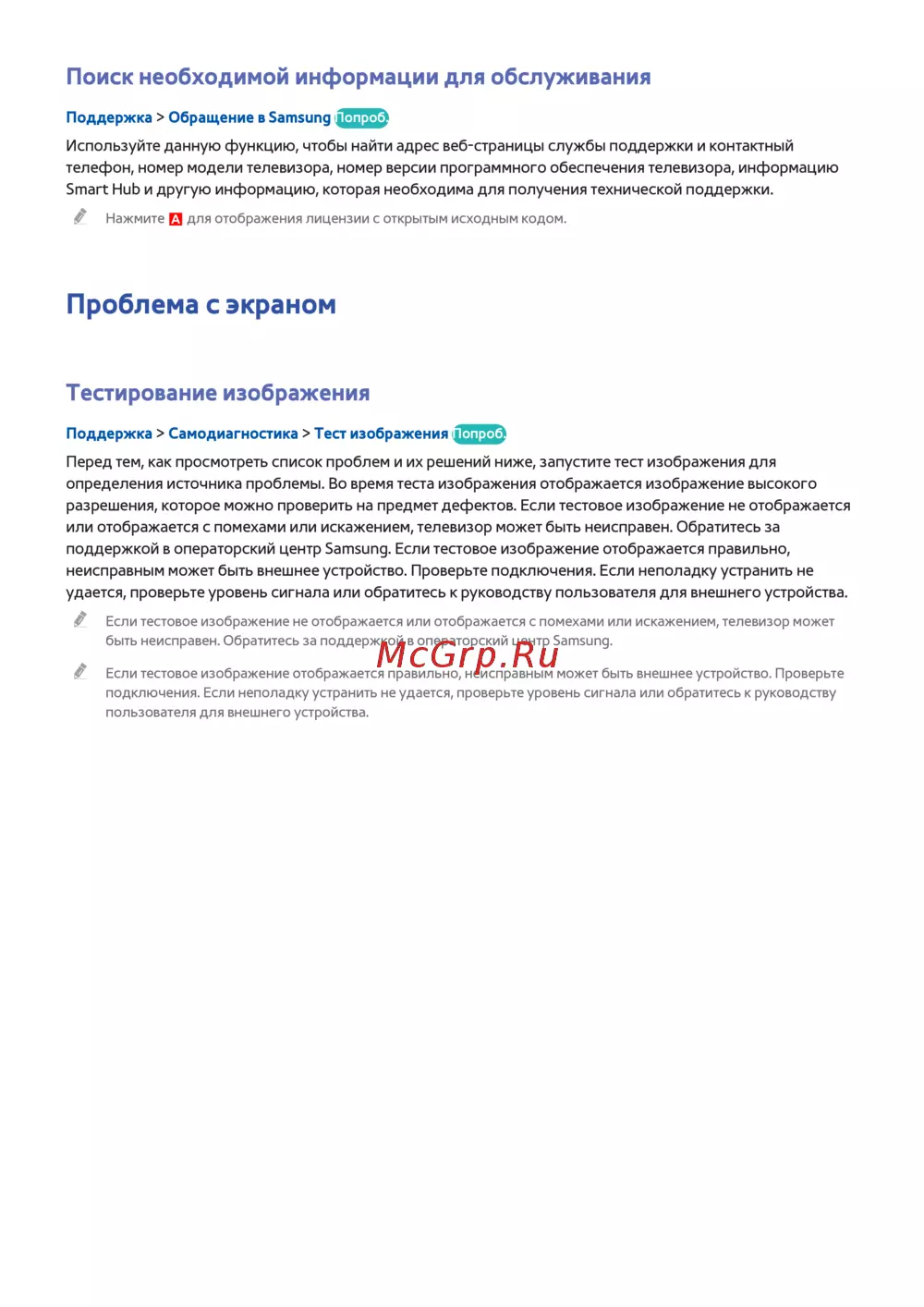 поддержкой в операторский центр Samsung. Если тестовое изображение отображается правильно,