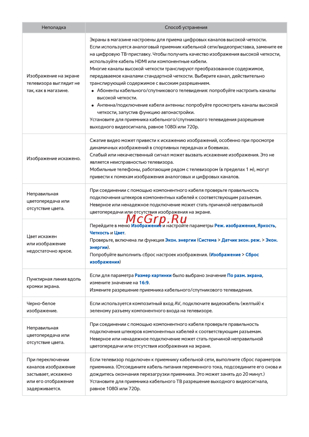 Слабый или некачественный сигнал может вызвать искажение изображения. Это не