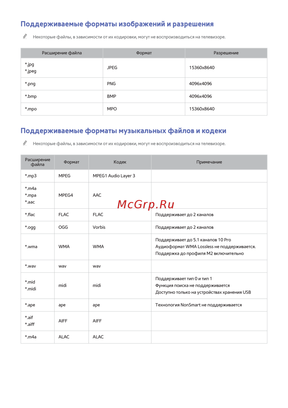 - Поддерживаемые форматы музыкальных файлов и кодеки p.152