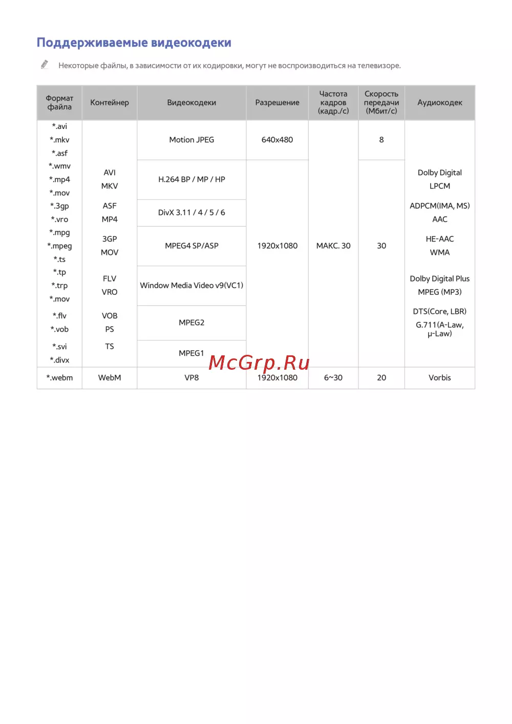 Samsung UE48H5203AK [153/166] Поддерживаемые видеокодеки