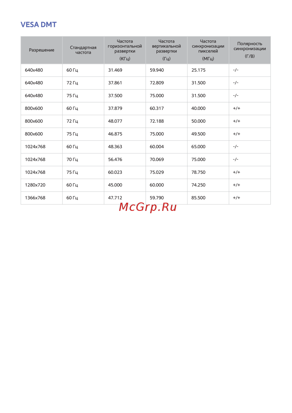 Samsung UE48H5203AK [161/166] Vesa dmt