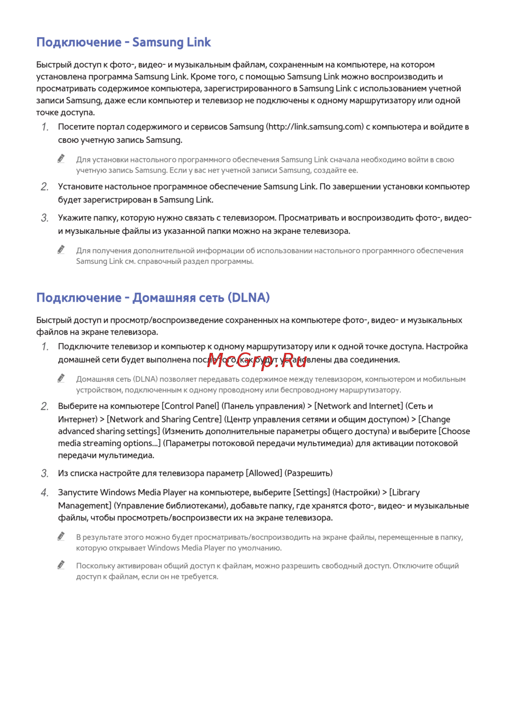 установлена программа Samsung Link. Кроме того, с помощью Samsung Link можно воспроизводить и