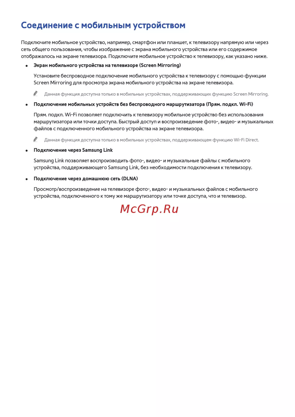 Данная функция доступна только в мобильных устройствах, поддерживающих функцию Screen Mirroring.
