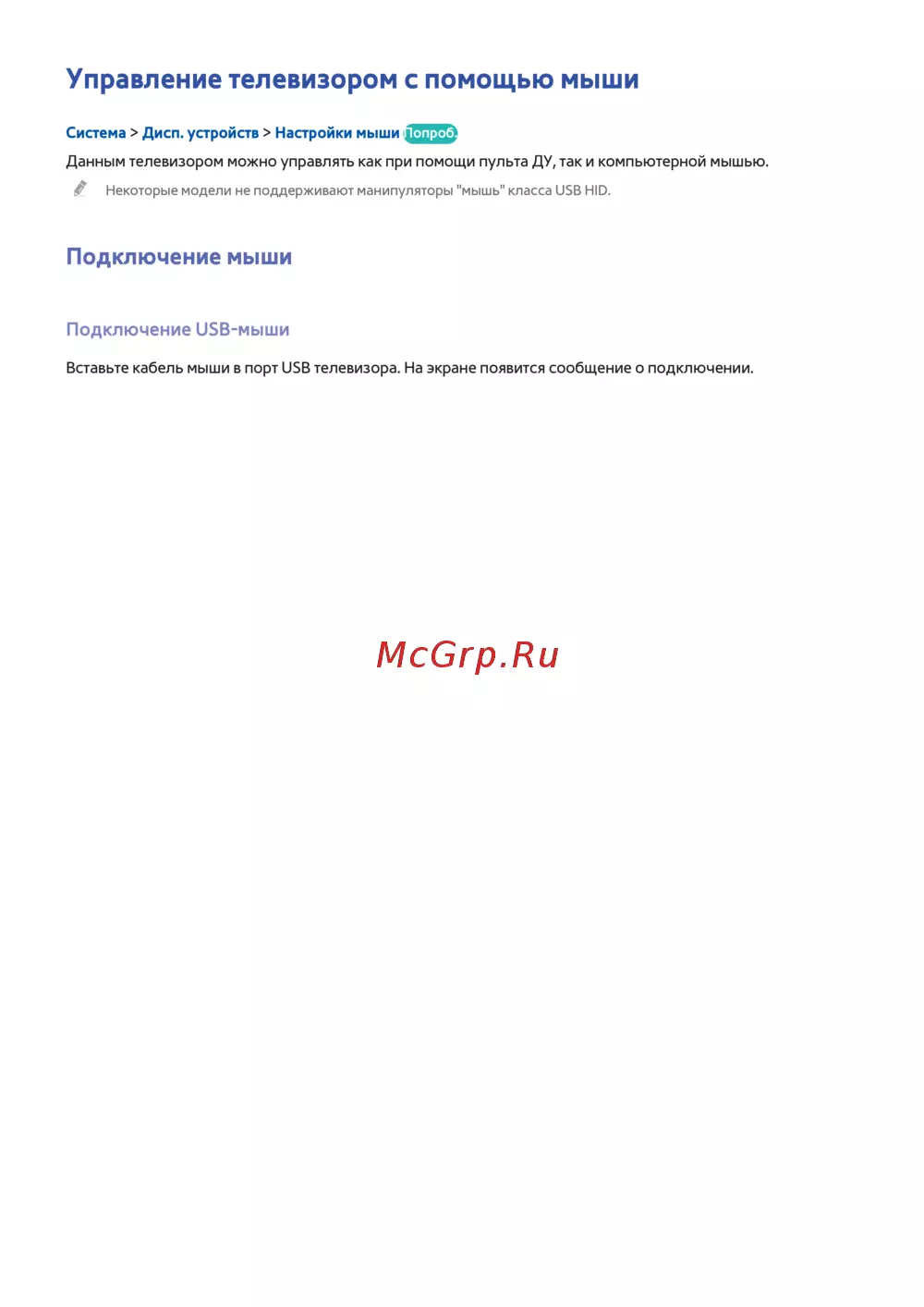 Некоторые модели не поддерживают манипуляторы "мышь" класса USB HID.