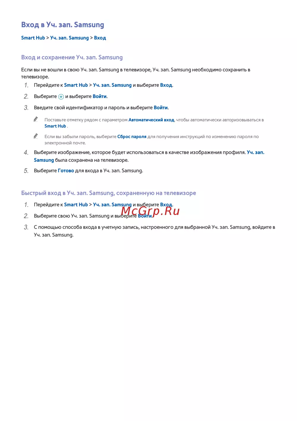 Перейдите к Smart Hub > Уч. зап. Samsung и выберите Вход.