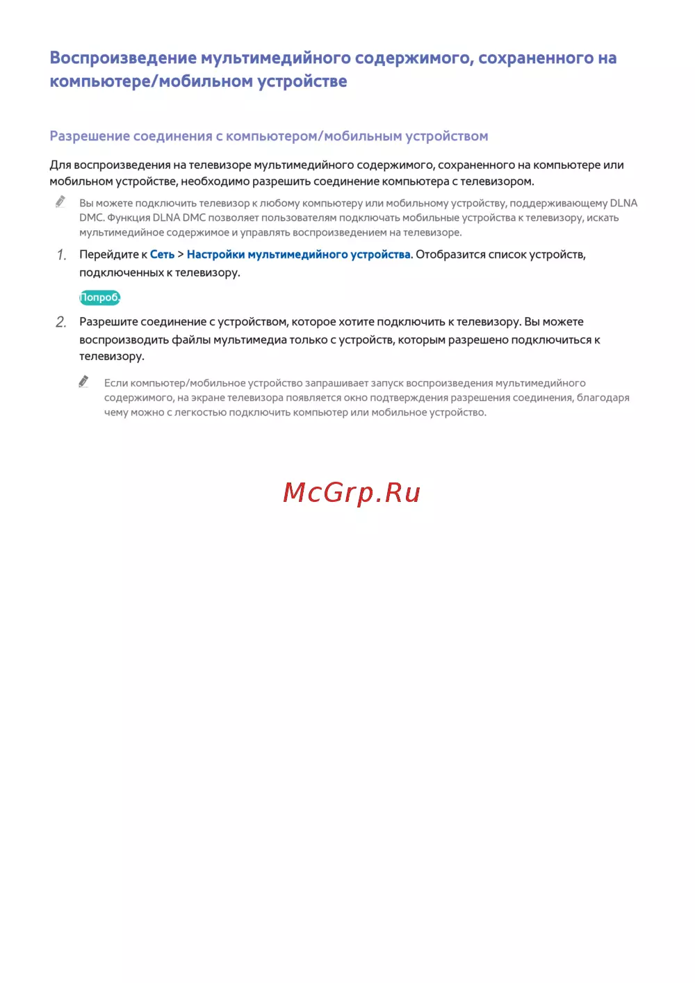 содержимого, на экране телевизора появляется окно подтверждения разрешения соединения, благодаря