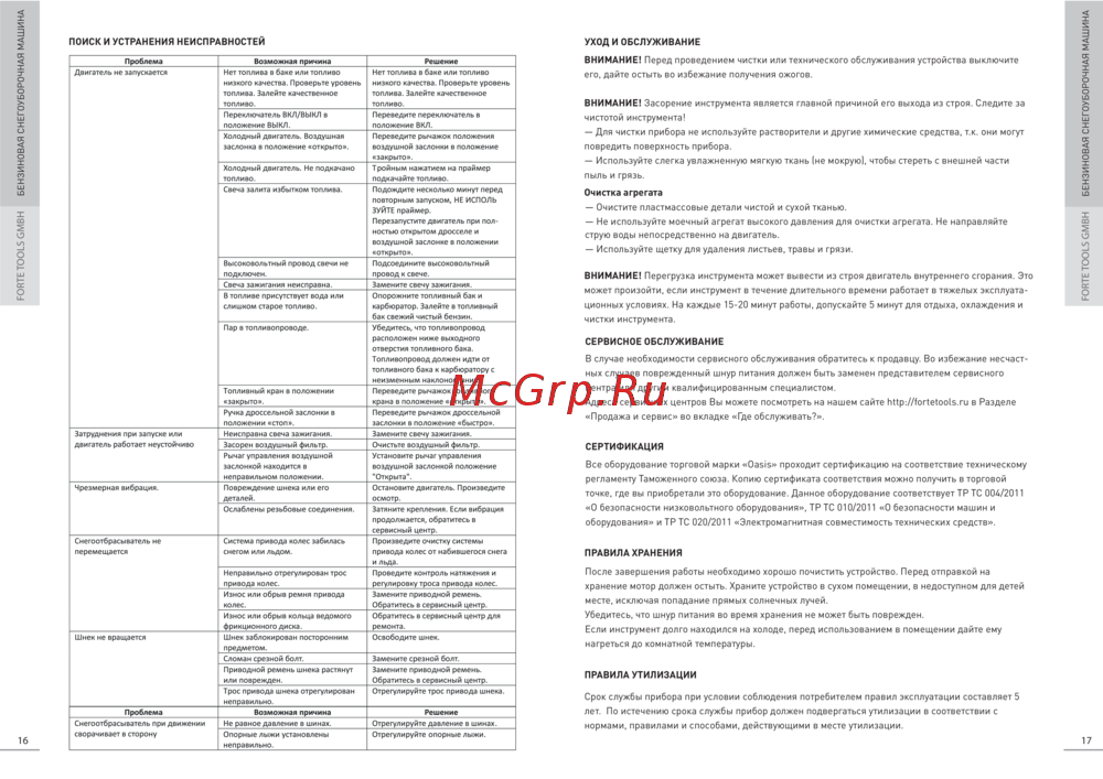 БЕНЗИНОВАЯ СНЕГОУБОРОЧНАЯ МАШИНА FORTE TOOLS GMBH