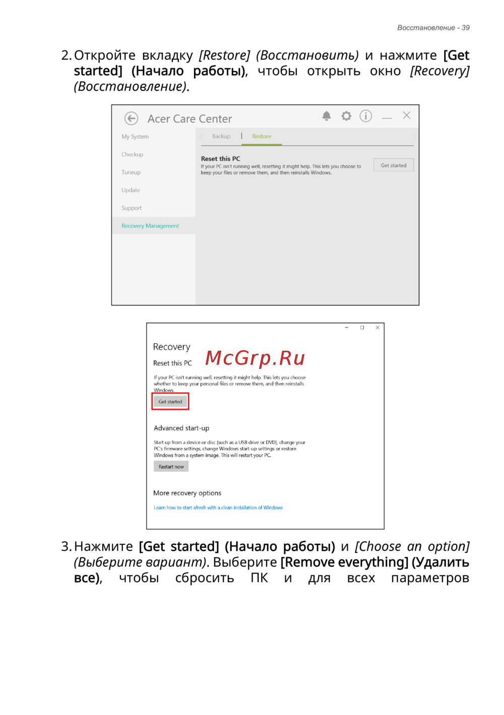 - Вернуть компьютер в исходное состояние и удалить все p.38