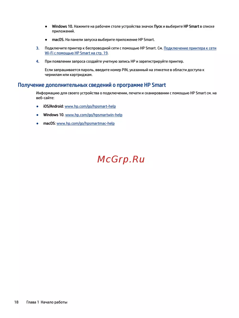 Информацию для своего устройства о подключении, печати и сканировании с помощью HP Smart см. на