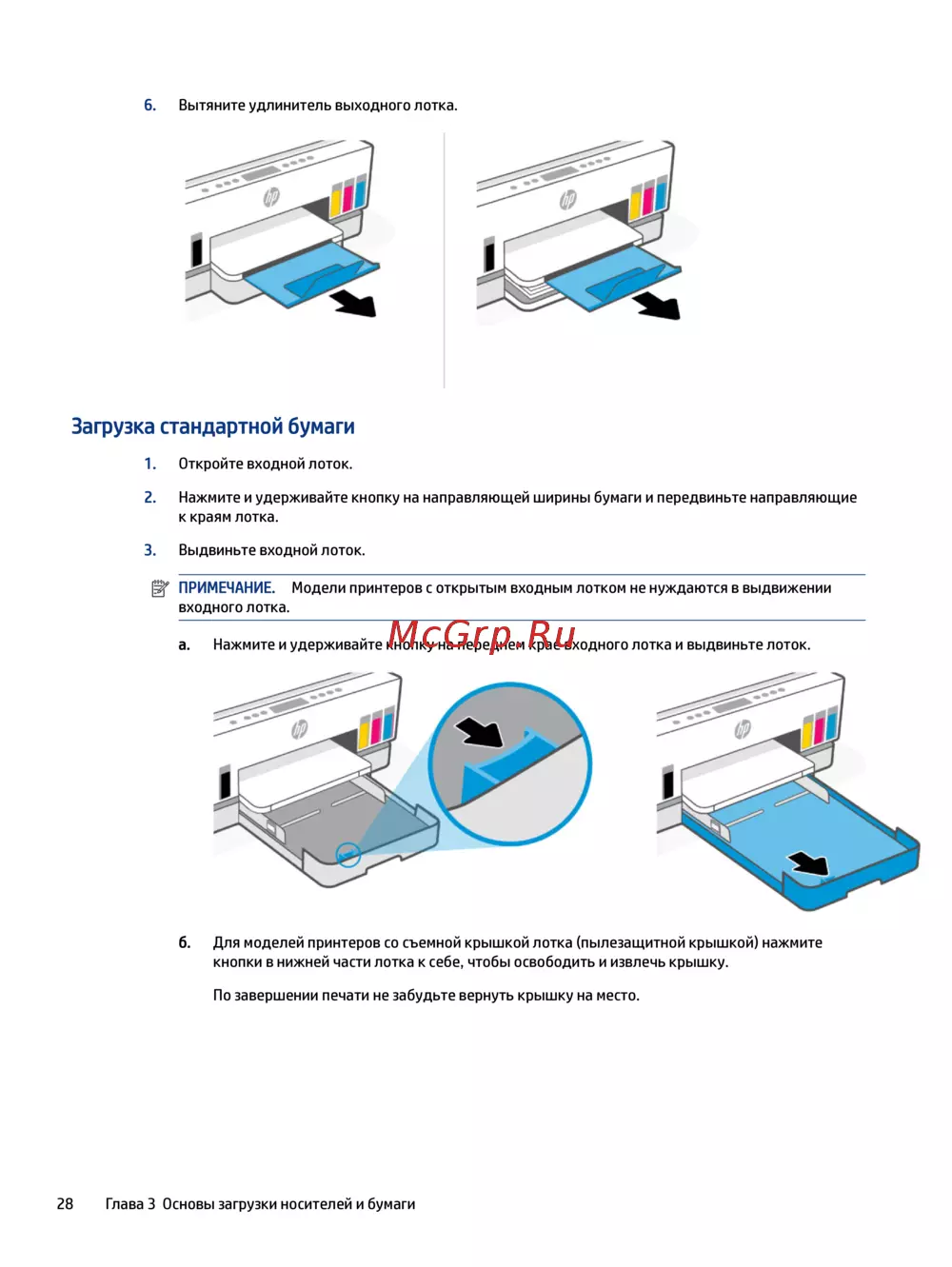 ПРИМЕЧАНИЕ. Модели принтеров с открытым входным лотком не нуждаются в выдвижении