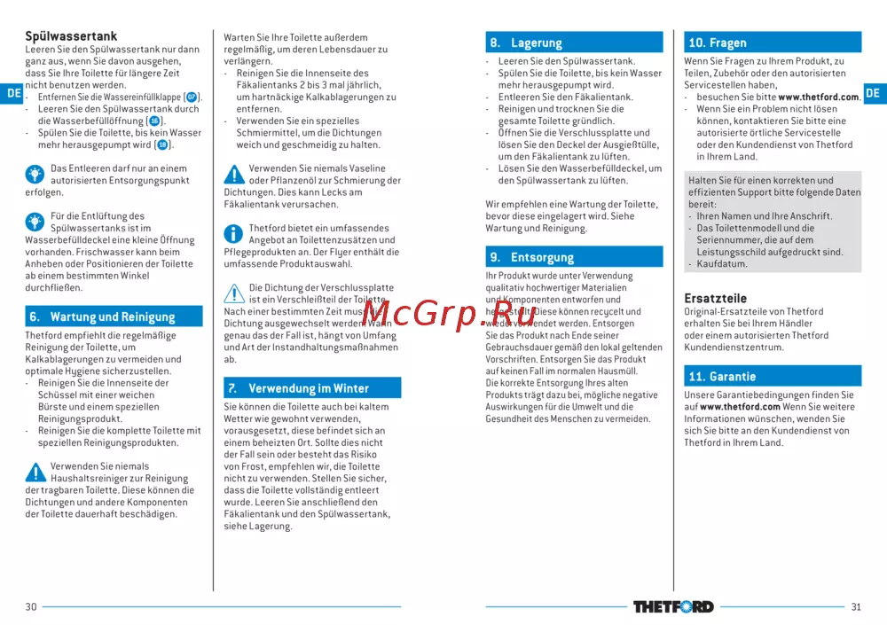![Thetford Porta Potti 335 WHITE 92828 [16/81] Wartung und reinigung](/views2/1353636/page16/bg10.png)