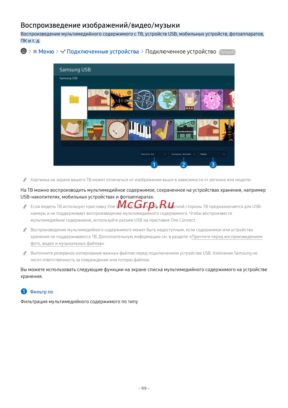 Выполните резервное копирование важных файлов перед подключением устройства USB. Компания Samsung не