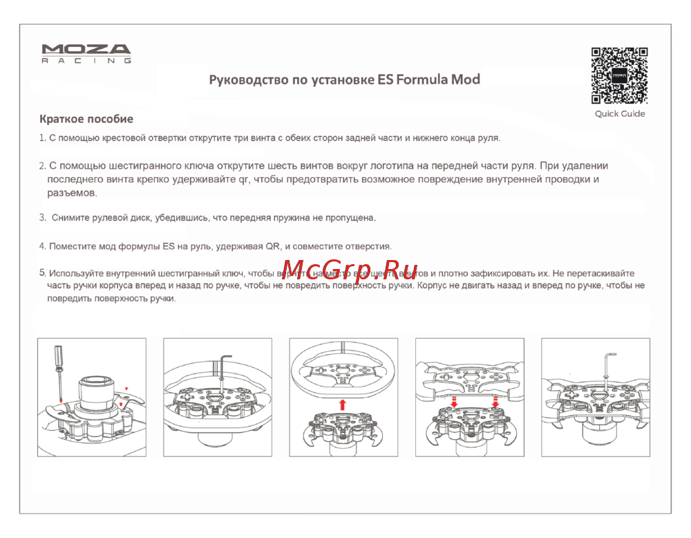 Moza ES Formula Wheel Mod RS032 Руководство по эксплуатации онлайн