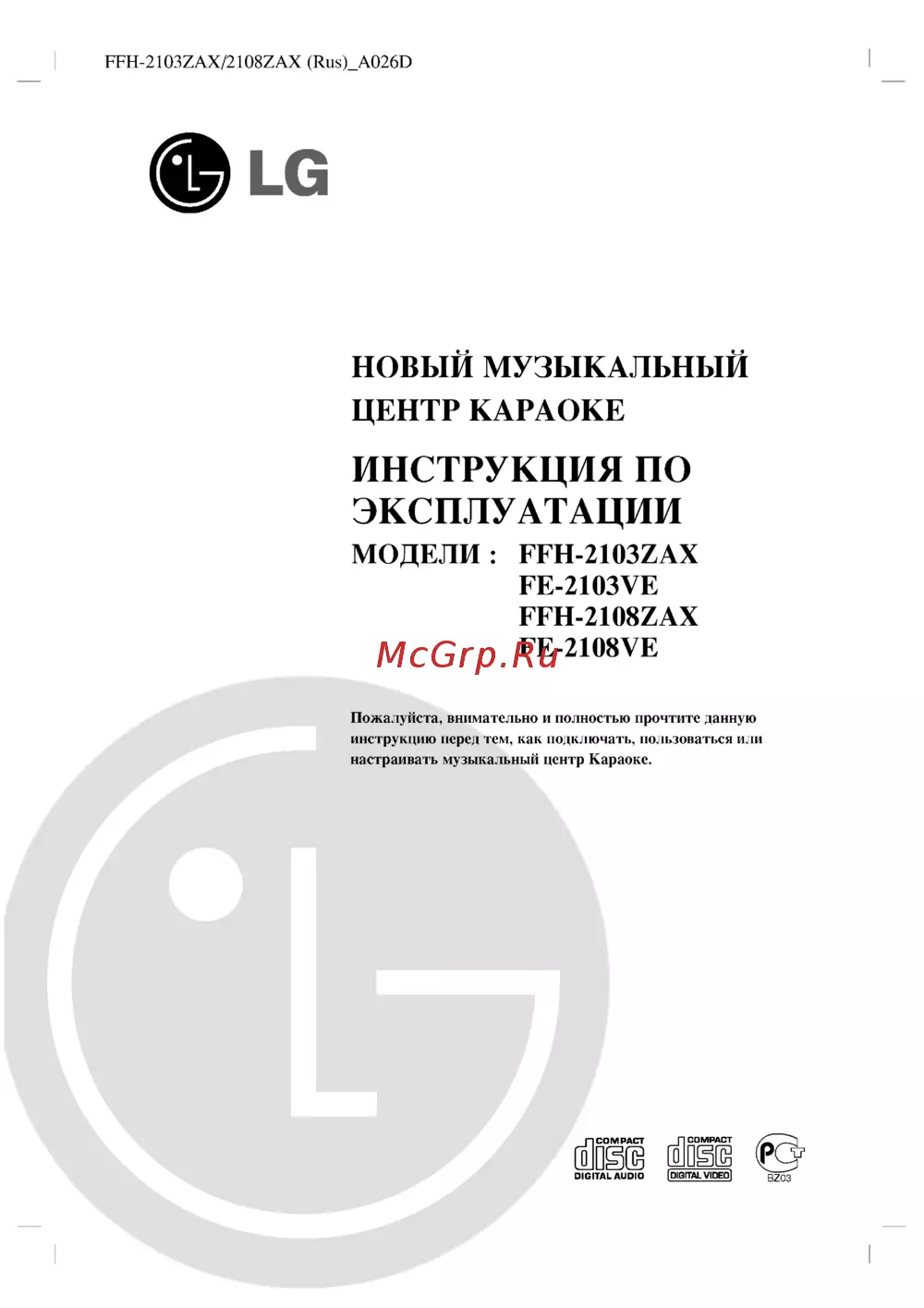 LG FE-2103VE Инструкция по эксплуатации онлайн