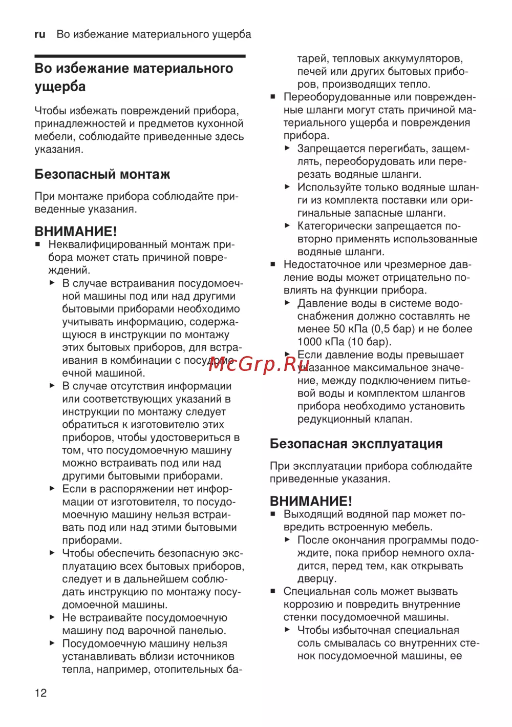ru Во избежание материального ущерба