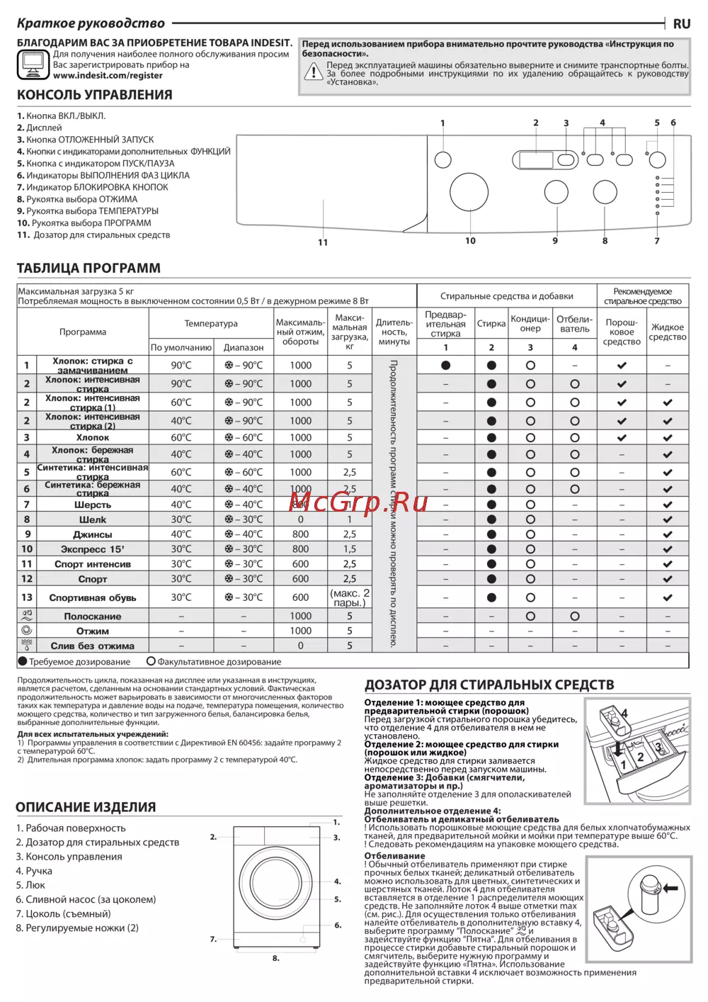 Indesit IWSD 51051 CIS Руководство по эксплуатации онлайн