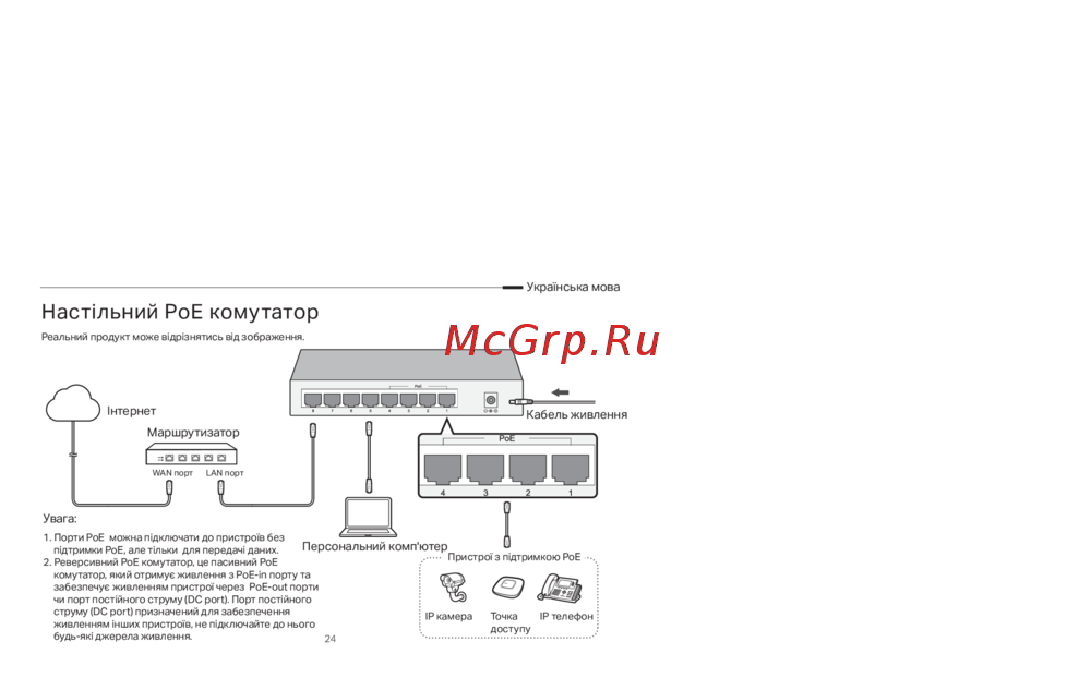 Tp-Link TL-SF1006P 6x100Mb 4PoE+ 67W неуправляемыйРуководство по эксплуатации -