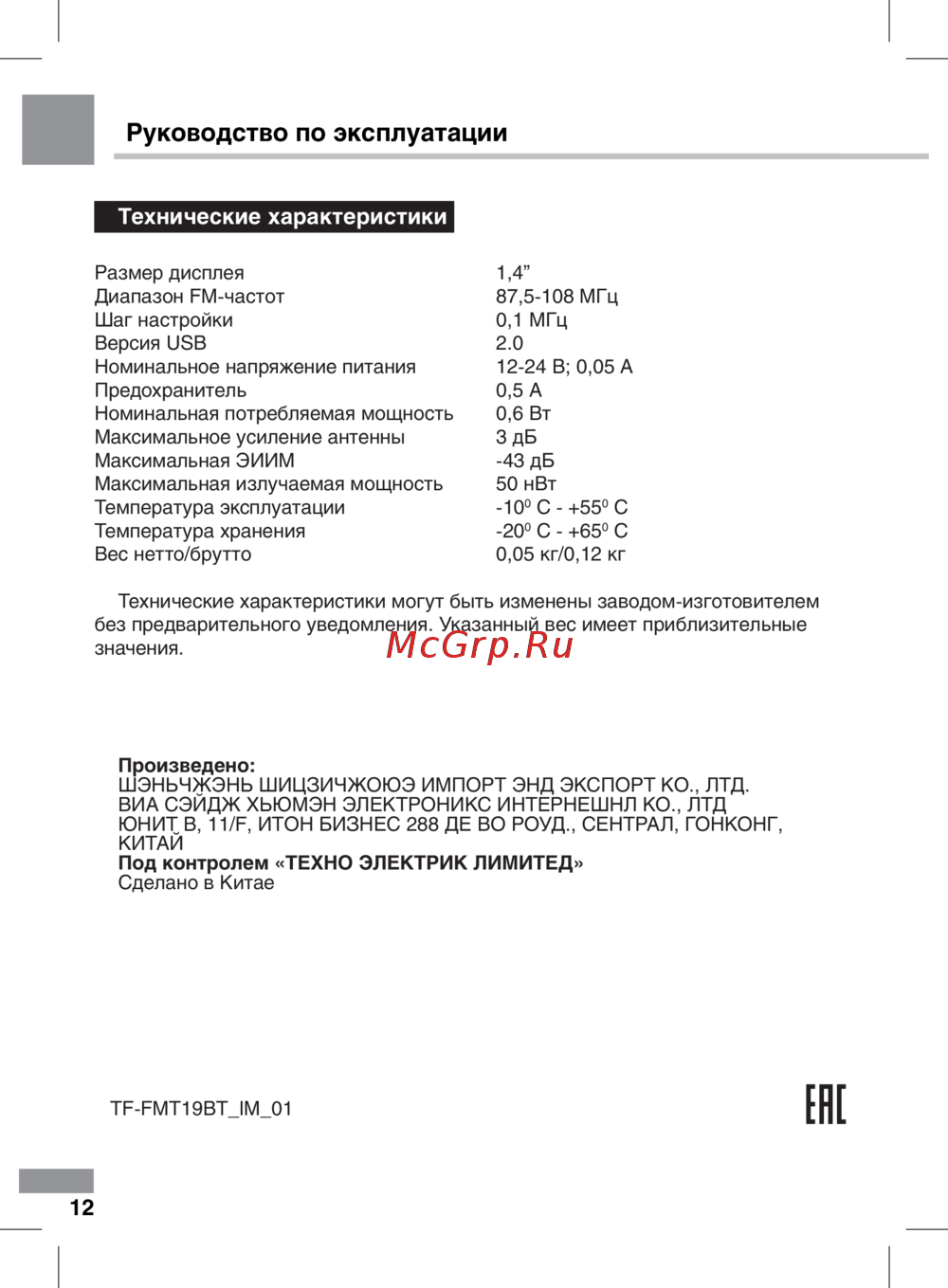 - Руководство по эксплуатации p.12
