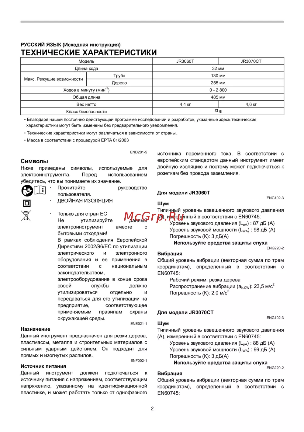 Makita jr3070ct Руководство по эксплуатации онлайн [2/12] 159570