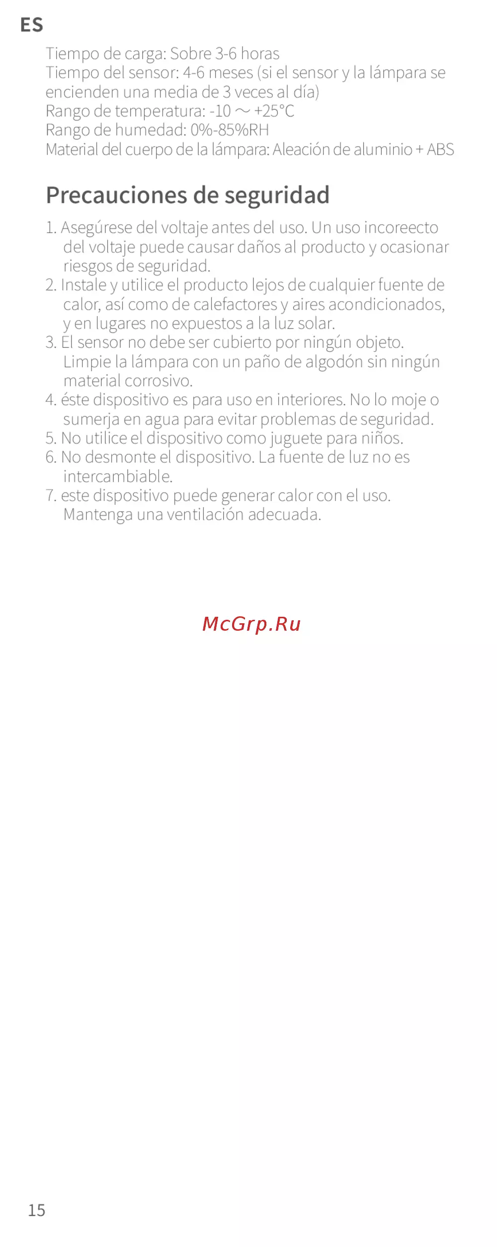 4. éste dispositivo es para uso en interiores. No lo moje o