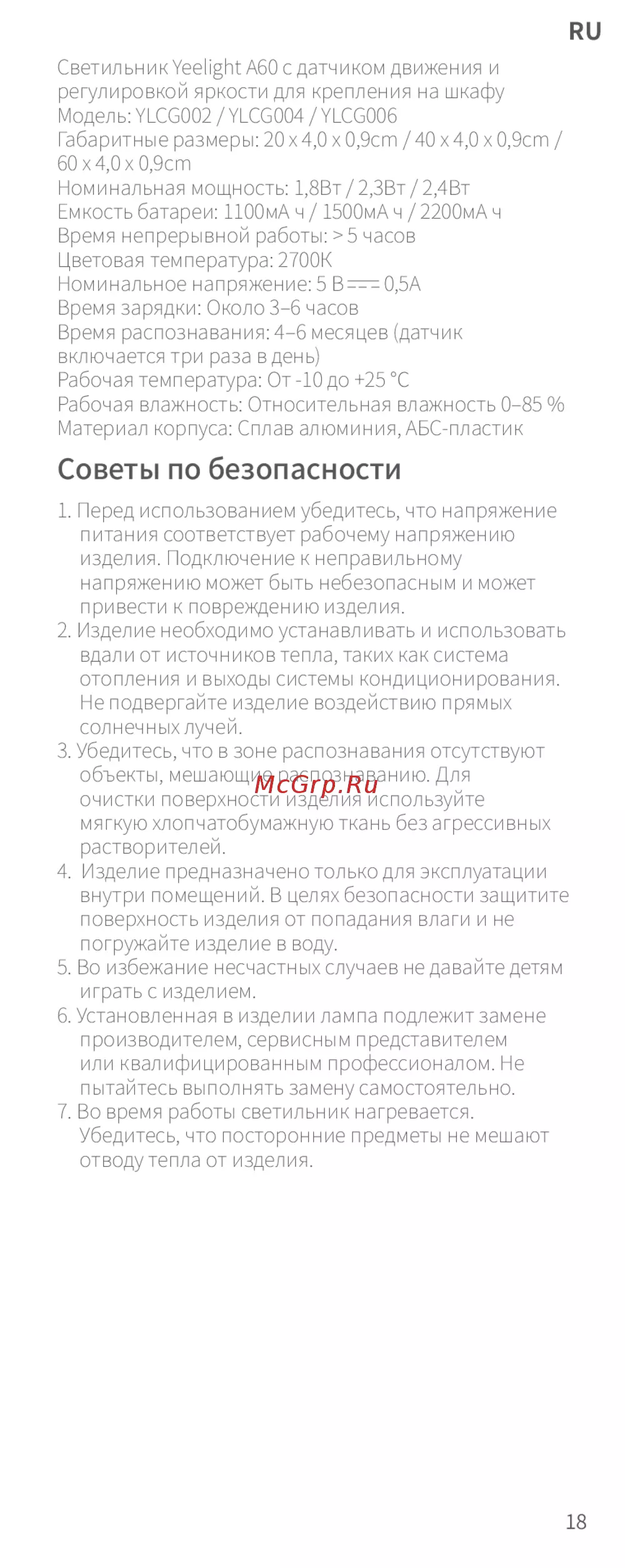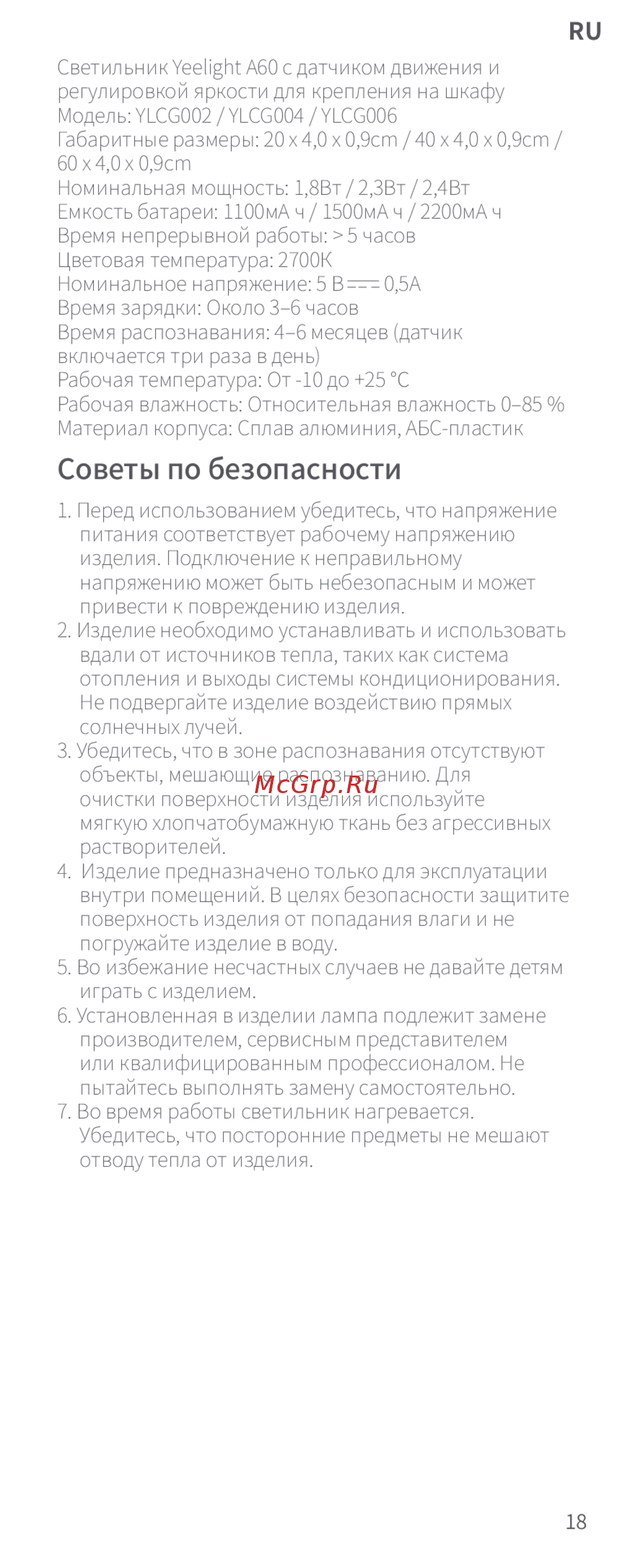 4. Изделие предназначено только для эксплуатации
