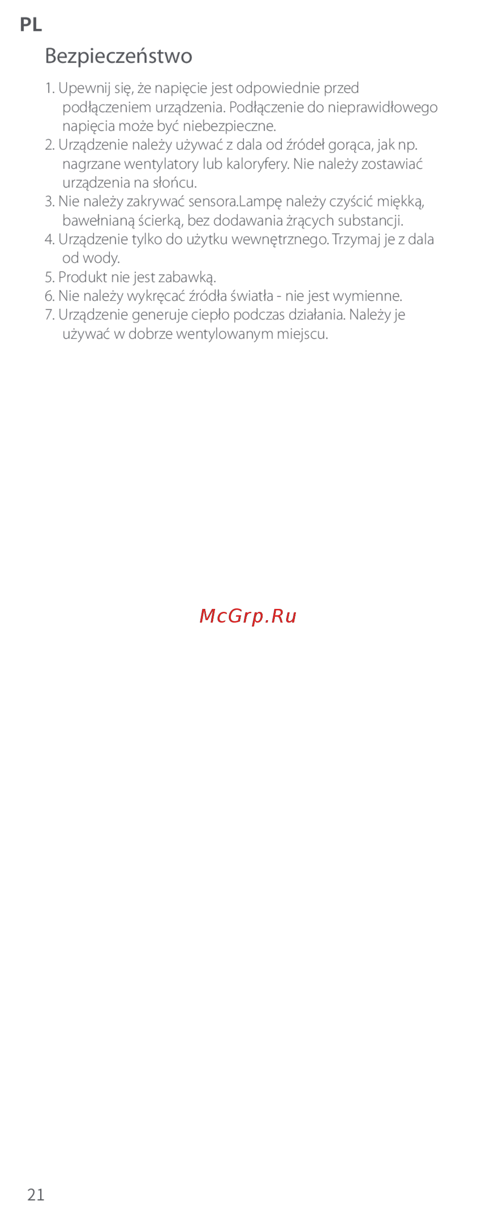 6. Nie należy wykręcać źródła światła - nie jest wymienne.