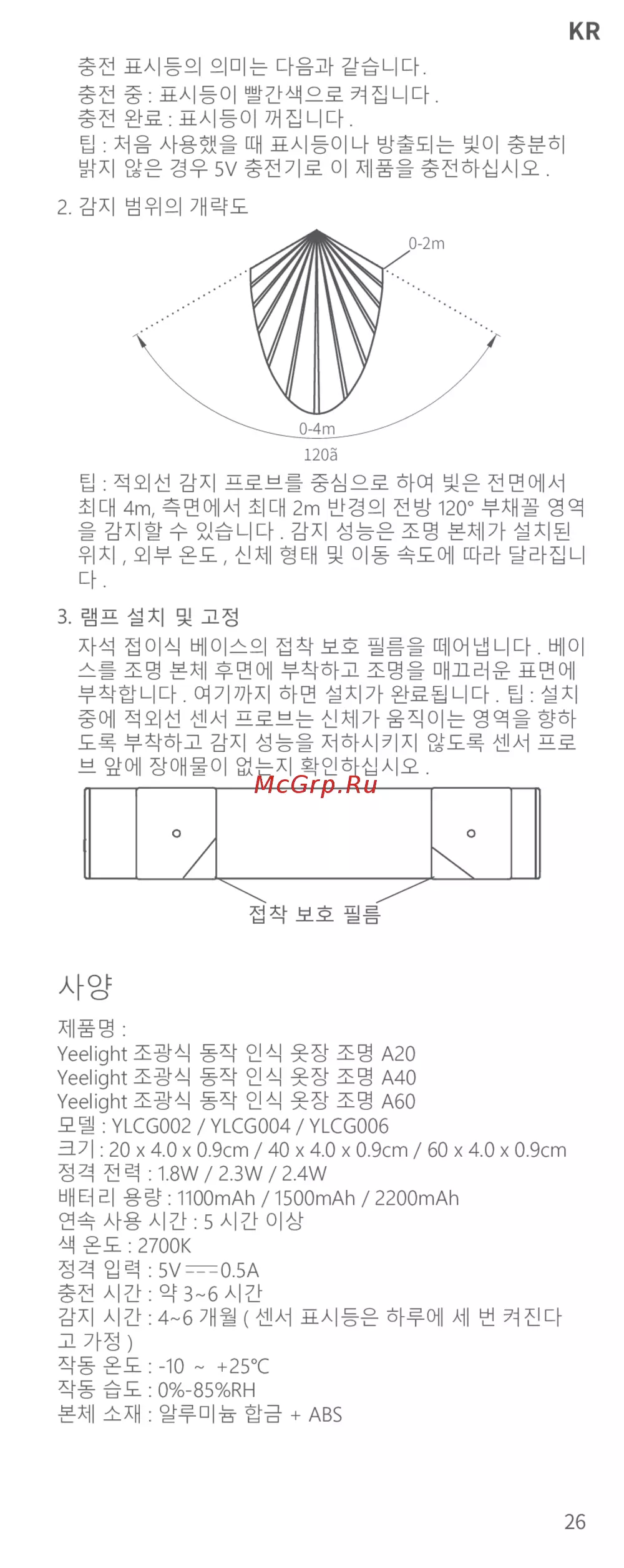 감지 시간 : 4~6 개월 ( 센서 표시등은 하루에 세 번 켜진다