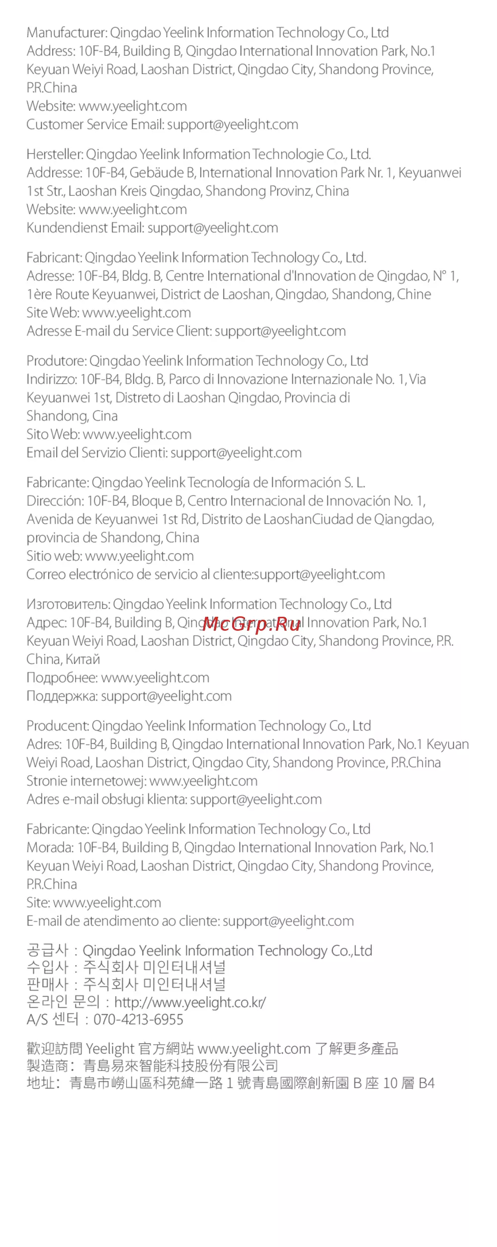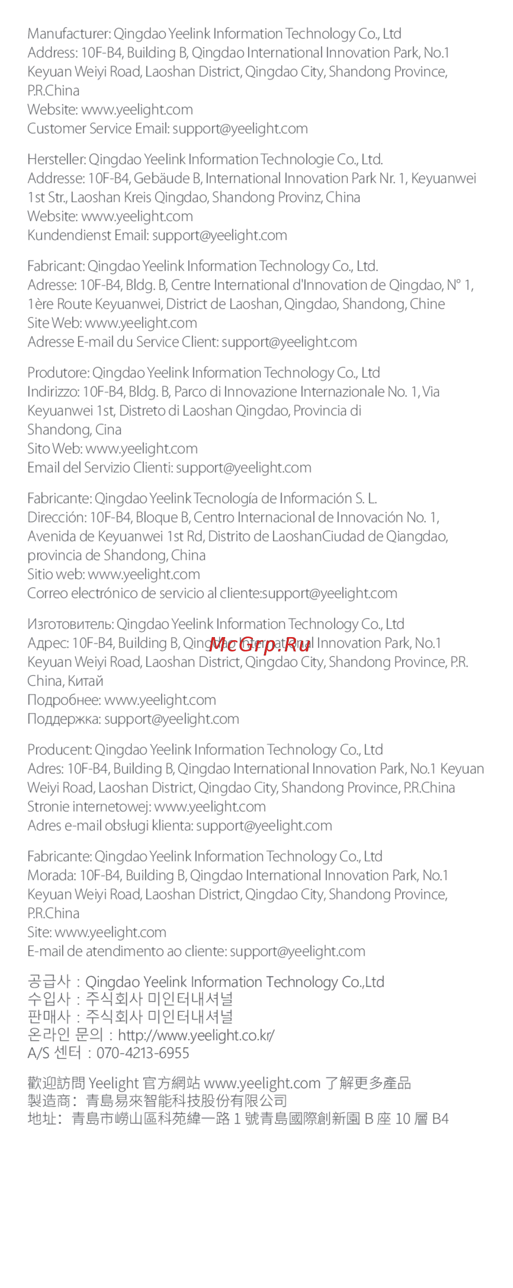 Изготовитель: Qingdao Yeelink Information Technology Co., Ltd